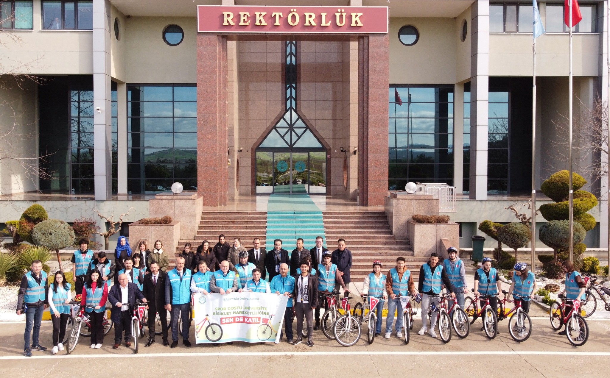 Rektör Prof. Dr. Yücel Oğurlu’da yerleşke boyunca pedallayan öğrencilerle rektörlük önünde bir araya geldi. Üniversite üst yönetiminin de eşlik ettiği Rektör Prof. Dr. Oğurlu, spor dostu üniversite kimliği ile bisiklet hareketliliğini desteklediklerini dile getirdi. Balıkesir Büyükşehir Belediyesinin destekleriyle yerleşkede bisiklet yollarının ayrılarak düzenlendiğini belirten Rektör Oğurlu, öğrencilerin taleplerini de dikkate alarak yerleşkedeki bisiklet hareketliliğini ve sosyal, kültürel ve sportif faaliyetleri desteklemeyi sürdüreceklerini sözlerine ekledi. Bisiklet Topluluğu Akademik Danışmanı Arş. Gör. İbrahim Misir ve topluluk üyesi öğrenciler de ilgi ve destekleri için Rektör Prof. Oğurlu’ya teşekkür ederek, Balıkesir Üniversitesi öğrencilerini de topluluğun etkinliklerine katılmaya davet etti.