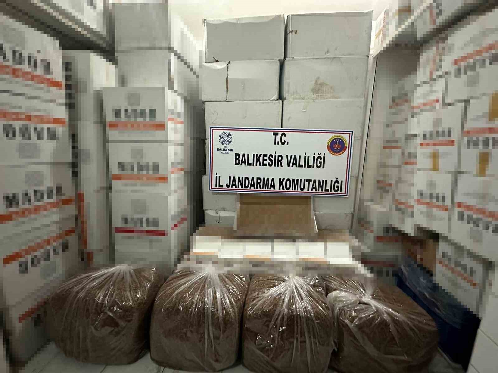 Balıkesir İl Jandarma Komutanlığınca, tütün mamulleri kaçakçılığına yönelik yapılan çalışmalar neticesinde; Edremit ilçesinde kaçak sigara üretimi yaparak haksız kazanç elde ettiği tespit edilen 1 şüpheliye ait depo ve iş yerinde icra edilen operasyonda; satışa hazır halde piyasa değeri 8 milyon 650 bin TL olan 1 ton 275 kilogram kıyılmış kaçak tütün, 1 milyon 380 bin adet kaçak tütünle doldurulmuş makaron ve 5 milyon 70 bin adet bandrolsüz makaron ele geçirildi. Olayla ilgili adli işlem başlatıldı.