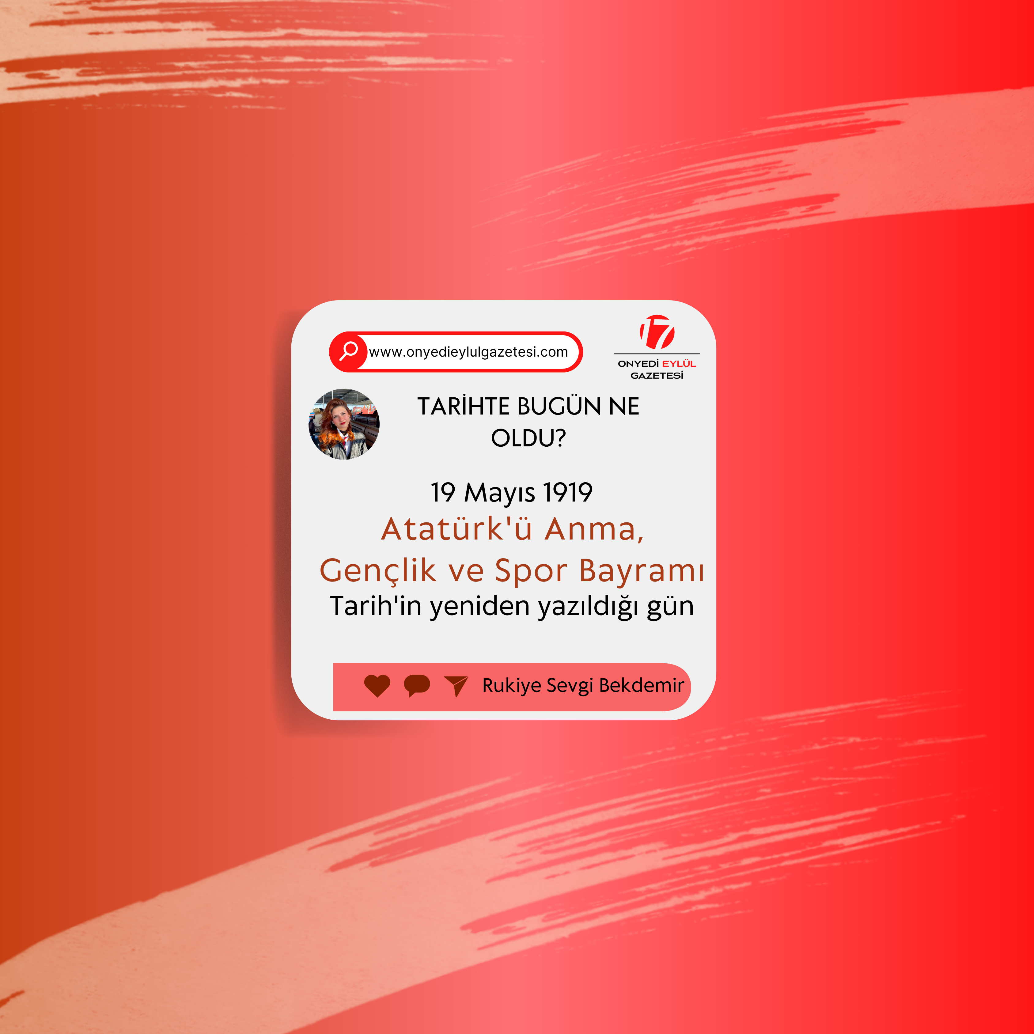 Bugün, “19 Mayıs Atatürk’ü Anma Gençlik ve Spor Bayramı” Günün anlam ve önemine gelecek olursak eğer, 19 Mayıs 1919 tarihi ülkemiz ve bizler için büyük dönüm noktalarından biridir hiç şüphesiz. Türk milletinin bağımsızlık mücadelesinin en büyük kıvılcımlarındandır.